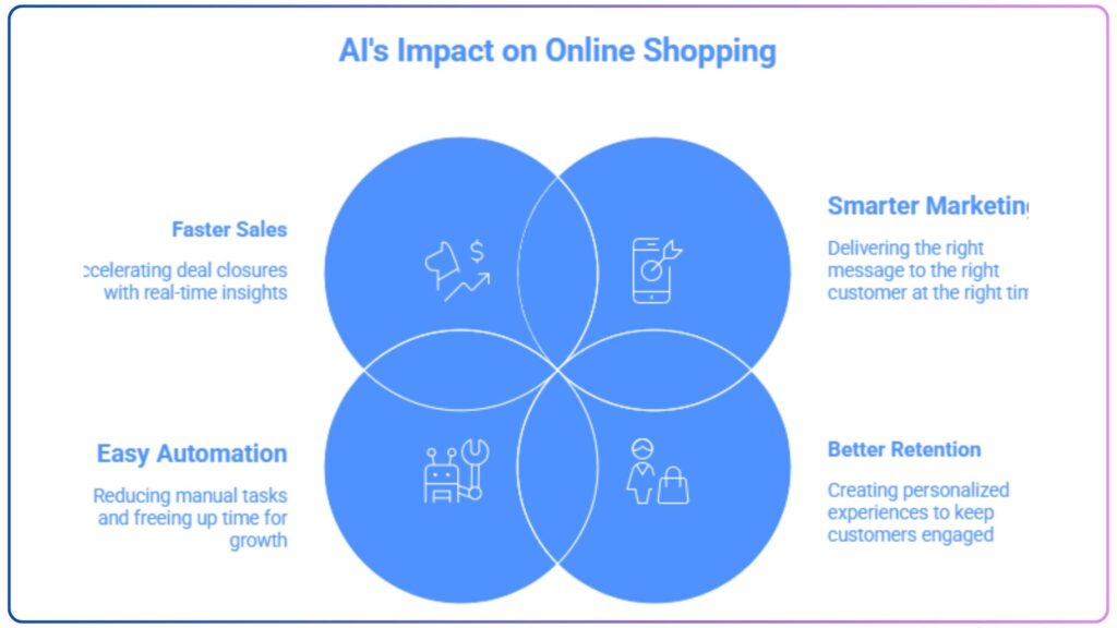 AI tools also help you close sales faster. They automate lead scoring and tracking buyer intent and offer real-time insights. This helps shorten the sales cycle and improve results at every stage. Many e-commerce businesses using AI see up to 25% faster deal closures and can cut costs by as much as 60%.