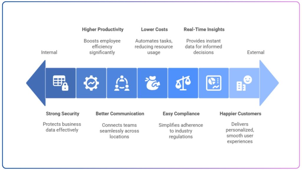 Enterprise applications offer a smooth conversation path for both the organization’s team and outside partners via quick messaging, video conferencing, and shared work displays. This way, teams stay connected regardless of their department or location. With better coordination, businesses experience stronger teamwork and more engaged employees who feel connected to business goals.