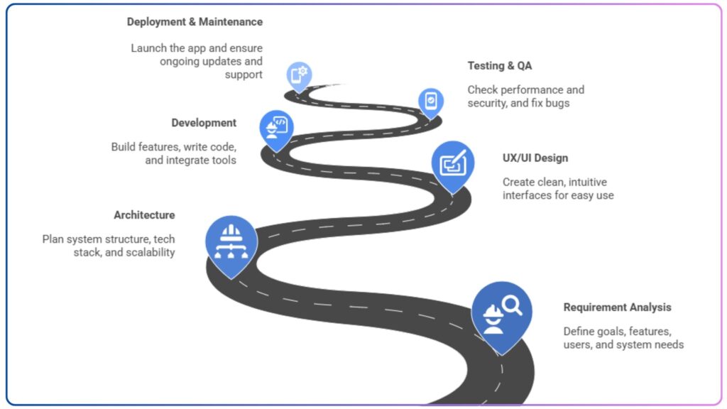 Once requirements are clear, the development team designs the architecture of the enterprise app. A reliable enterprise software development company can help businesses characterize the structure of the system, database design, and plans for security and scalability.