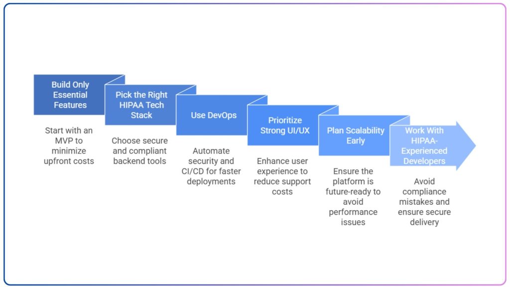 Engaging a development partner with proven HIPAA expertise is vital for cost avoidance. While outsourcing can reduce initial costs by up to 50%, partnering with inexperienced developers who are unfamiliar with HIPAA regulations may necessitate expensive rebuilding or paying more later to fix fundamental compliance issues.